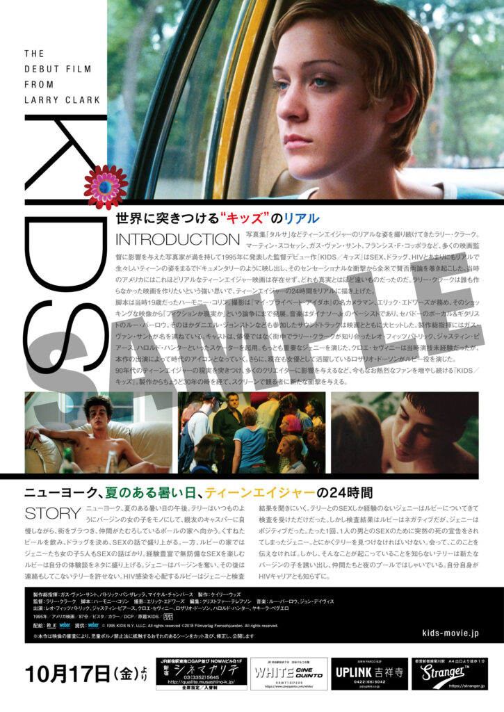 写真集「タルサ」などティーンエイジャーのリアルな姿を撮り続けてきたラリー・クラーク。マーティン・スコセッシ、ガス・ヴァン・サント、フランシス・F・コッポラなど、多くの映画監督に影響を与えた写真家が満を持して1995年に発表した監督デビュー作『KIDS/キッズ』はSEX、ドラッグ、HIVとあまりにもリアルなティーンの姿をまるでドキュメンタリーのように映し出し、そのセンセーショナルな衝撃から全米で賛否両論を巻き起こし、日本でも大ヒットした。