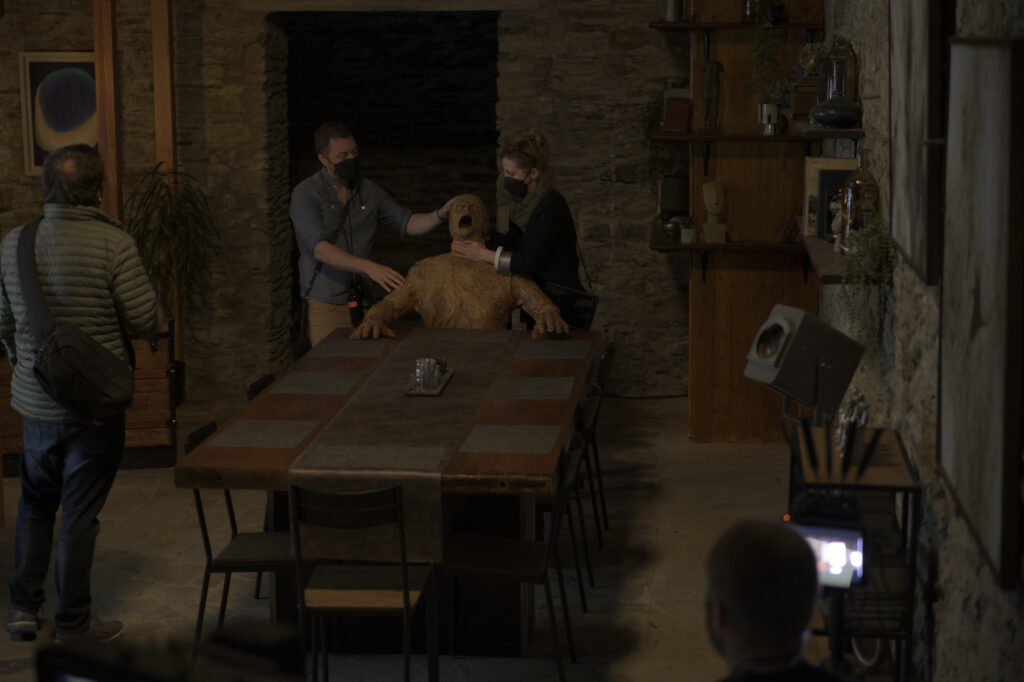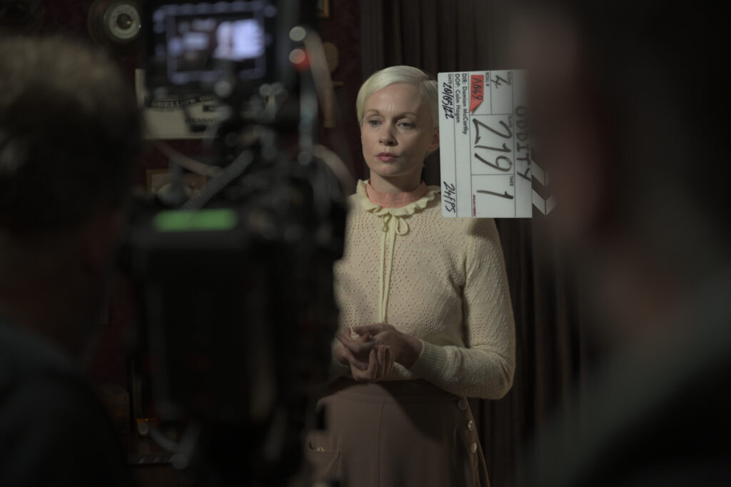 あわせて、メイキングカット6点も解禁。ダーシーが営む骨董品屋の内観、ダーシー役のキャロリン・ブラッケン、メイク中のテッド役のグウィリム・リー、オリン・ブール役のタイグ・マーフィーとダミアン・マッカーシー監督、精神病棟の患者、木製マネキンの配置を決めている場面など、撮影の裏側の様子が映し出されている。