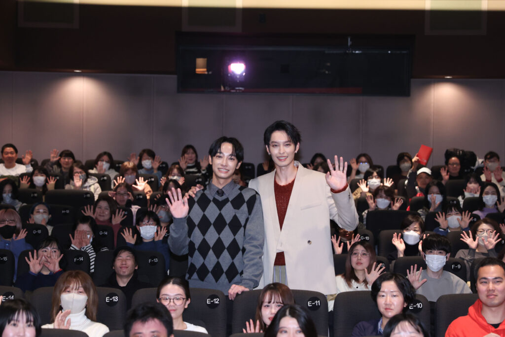 12月14日、『ピアス 刺心』の満席の舞台挨拶が行われ、W主演を務めた台湾の実力派俳優ふたりが登壇。 - 髪を整え合う兄弟のような絆