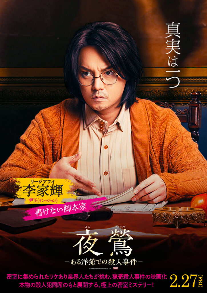 本作はアジア圏で絶大な人気を誇り、日本でもドラマ「君、花海棠の紅にあらず」で注目を集め一躍実力派スターの仲間入りを果たした尹正(イン・ジョン)が主演を務めるエンターテインメント・ミステリー。戦後の混沌とした上海で、落ち目の映画人たちが未解決猟奇殺人を題材に一夜で大ヒット脚本を作るため密室に集められるが、そこには本物の犯人も同席しており、虚実入り乱れる命懸けの推理が展開する。本国で3週連続No.1、興行収入176億円超を記録し、2022年百花賞最優秀脚本賞を受賞した異例の大ヒット作である。