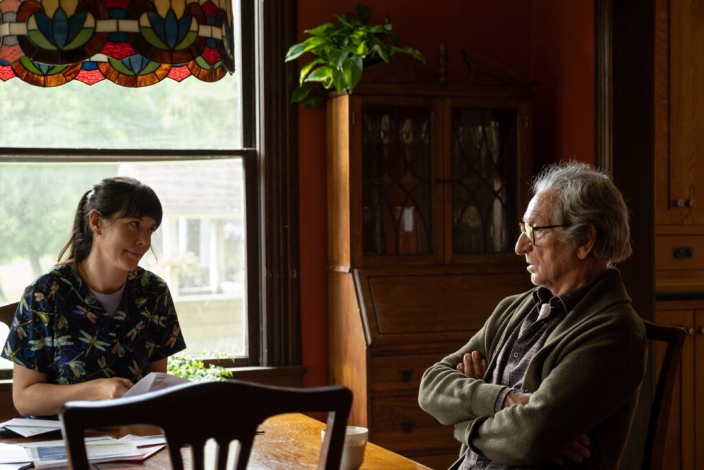 また、ソファーに並んで座るミルトンと隣人のサンディー、ジョイスの姿や、謎めいた窓越しに3人を見下ろす場面も。思いがけない出会いが、彼らの“これからの人生”をどのように変えていくのか——物語への期待が一層高まる場面写真となっている。