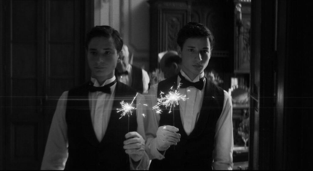 本映像では、再婚式の給仕をする双子の少年たちに執拗な視線を向けるメンゲレの様子からも、依然として双子への興味や関心が失われていないことが伝わってくる。