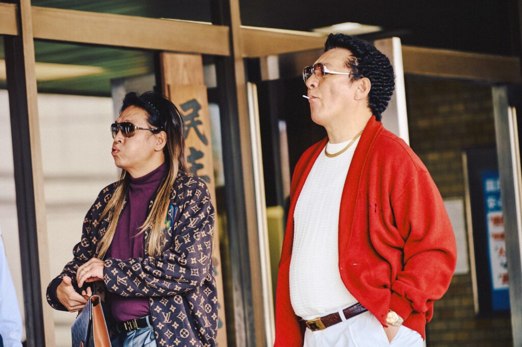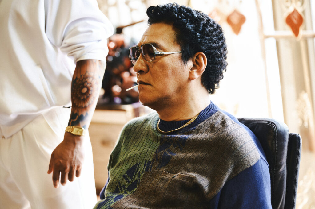 トレードマークのパンチパーマとサングラスの奥から険しい表情を覗かせるのはピエール瀧演じる岩城組・組長の岩城良平。新宿に根差すオールドスクールなヤクザで、その背後には常にバイオレンスの予感が漂っている。