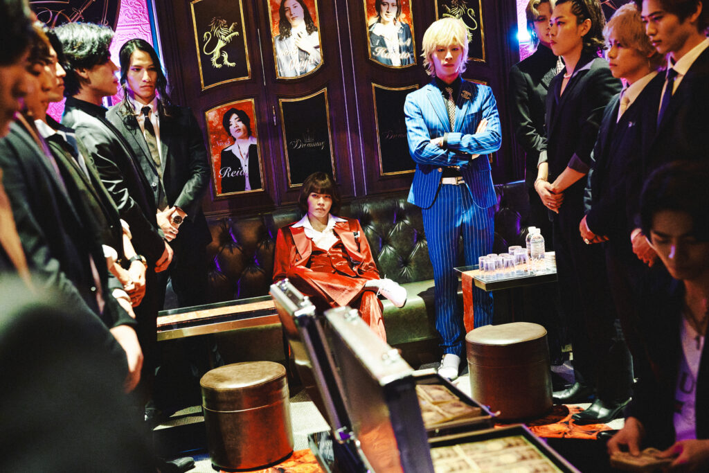 加えて、上田竜也演じる新宿最大ホストグループ・総帥である海斗が、煌びやかなホストクラブで赤いスーツを纏い異彩を放つオーラで空間を支配している姿や、豪邸を半裸で過ごしているカット、さらに街を闊歩する長谷川慎演じる空哉などホストたちの姿を切り取ったカットも。