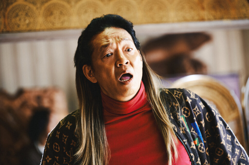 そして闇バイト組織のリーダー・ラビット役に扮するのは、映画で役を演じるのは今作が初となるとにかく明るい安村。サングラスの奥から鋭い眼光を飛ばし、小さなプールに横柄にふん反り返るその姿は、ユーモアを通り越して不気味な威圧感を放っている。